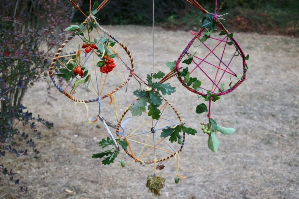 Jetzt im Altweibersommer, wo die Spinnen bald ihre Netze weben und die Natur die ersten herbstlichen Früchte preisgibt, ist eine gute Zeit, um Traumfänger zu basteln. Ganz kleine Kinder sammeln schöne Dinge, die sie selbst, die Größeren oder die Eltern am Traumfänger anbringen. Die Großen ab ca. fünf, sechs Jahren dürfen sich natürlich auch am Rahmen zu schaffen machen.