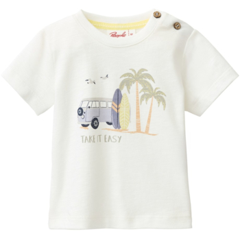 Dieses liebevoll gestaltete Kurzarmshirt aus weicher Bio-Baumwolle ist ein bequemes Basic für warme Tage. Das hautfreundliche Material sorgt für ein angenehmes Tragegefühl, während die bequeme Passform viel Bewegungsfreiheit beim Spielen und Entdecken schenkt.