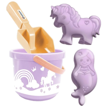 Zauberhafte Märchenwelten entstehen im Sand: Mit dem liebevoll gestalteten Einhorn & Meerjungfrauen-Sandspielset von Spielstabil kann dein Kind fantasievolle Szenen im Sandkasten, im Garten oder am Strand gestalten. Der handliche Eimer, eine stabile Schaufel sowie zwei niedliche Sandförmchen in Form von Einhorn und Meerjungfrau laden zum Buddeln, Formen und Entdecken ein. Der kleine Eimer transportiert Sand und Wasser zuverlässig von A nach B, während die Schaufel perfekt in kleinen Kinderhänden liegt. Besonders viel Freude bereiten die detailreichen Förmchen: Im feuchten Sand entstehen wunderschöne Einhorn- und Meerjungfrauen-Abdrücke, die kleine Märchenfans immer wieder neu entdecken können. So wird das Spielen draußen zu einem kreativen Erlebnis, das Fantasie, Motorik und Rollenspiel anregt.