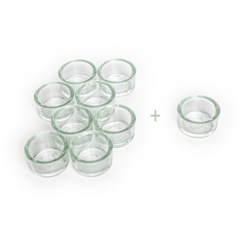 Das Teelichterhalter-Set besteht aus 8 Teelichtgläsern und einem Gratisglas mit einem Durchmesser von 39 mm. Teelichter ohne Aluhülle können in einem Teelichtglas sicher aufbewahrt und herunter gebrannt werden. Dank Glasoptik fügen sich die Teelichthalter in jede Dekoration perfekt ein. Ideal zum Beispiel für den Jahreszeitentisch oder für die Esstisch-Dekoration.