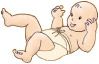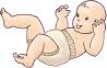Das Baby wird nun auf das Windelpacket gelegt. Schlage jetzt beide Oberteile nacheinander nach innen.